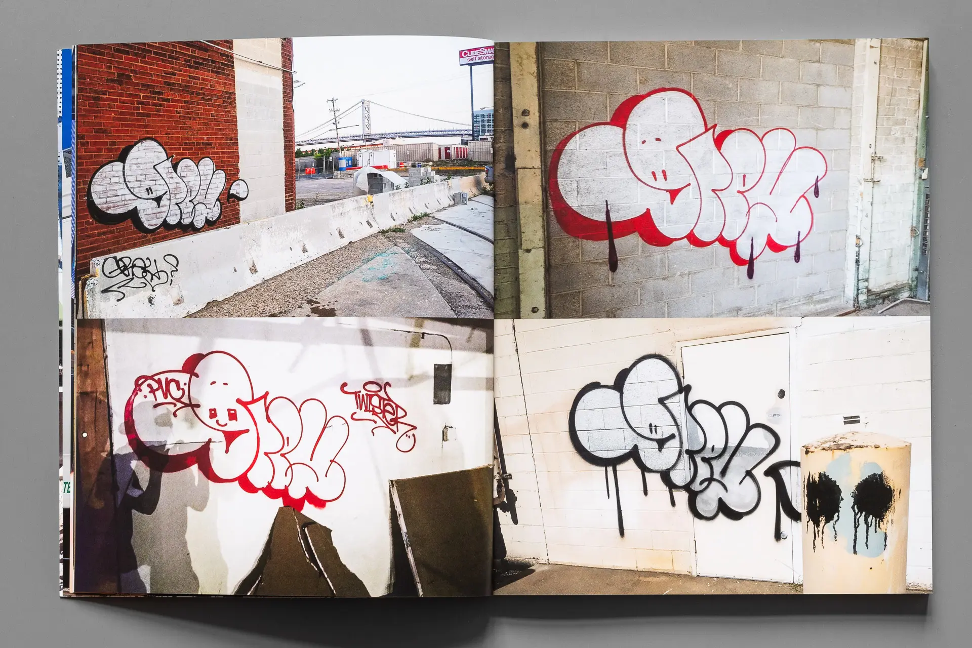 Besides graff photos you can find drawings, action shots, collages of naïve beginner graff, sketches and even a selfie in the content. Also featured are tags and pieces by befriended writers like DESK, TWISTER, GESO, ADEK, and FALSE. For a closer look on GREY’s whole body of work we recommend checking out his limited zine Stolen From The Interweb.