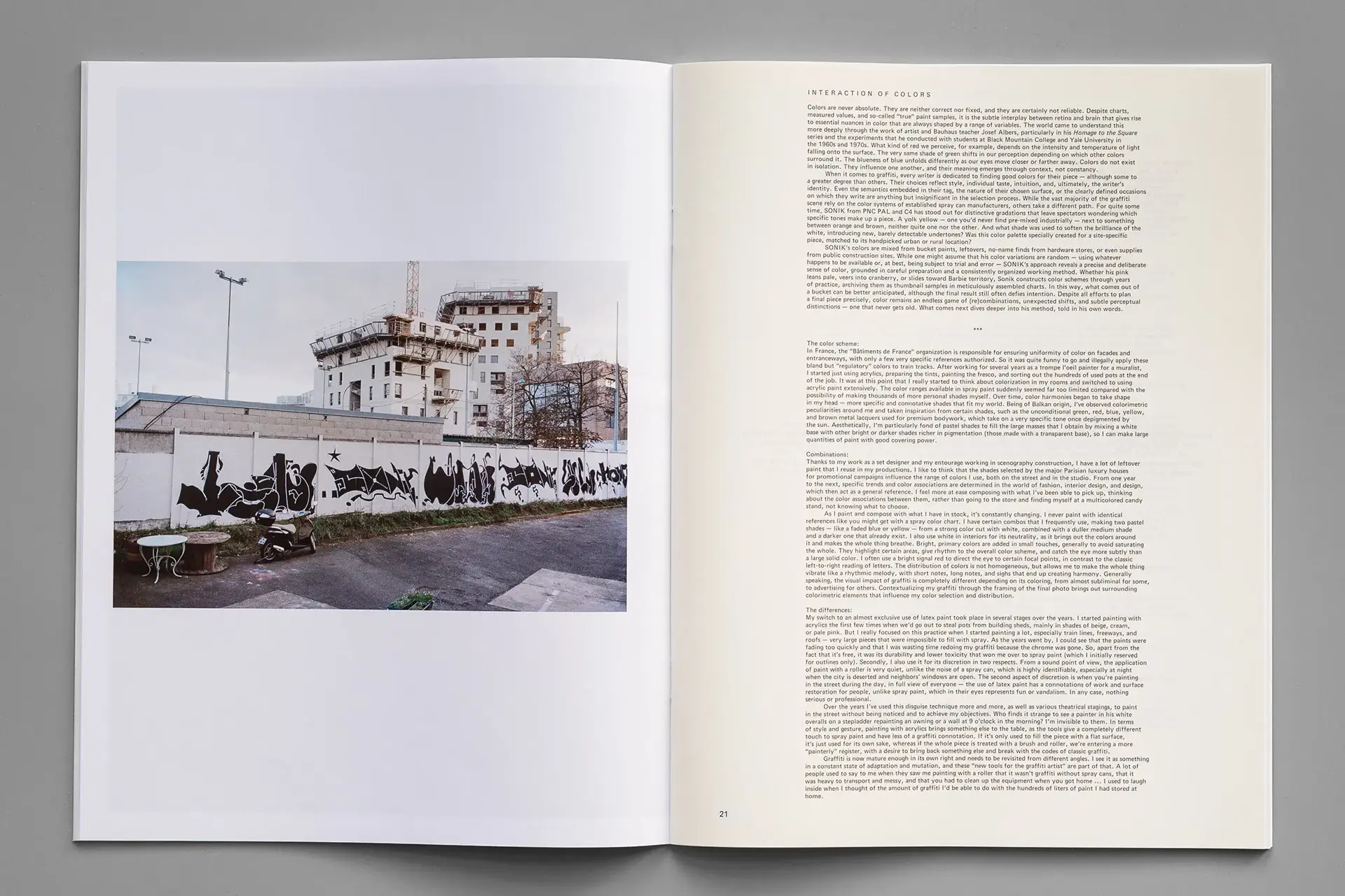 This time the excellent curated content was fitted in a high quality printing product with a slightly structured silver cover and white screen print on it, a piece of art on on its own. Contrary to today’s common consumption of graffiti, whether on printed or social media, The Last Issue comes around the corner with almost 50% of text and illustrative content next to another half of photographic writing related pages like photo essays by SONIK, KARE and the Berlin based HUZKIES.