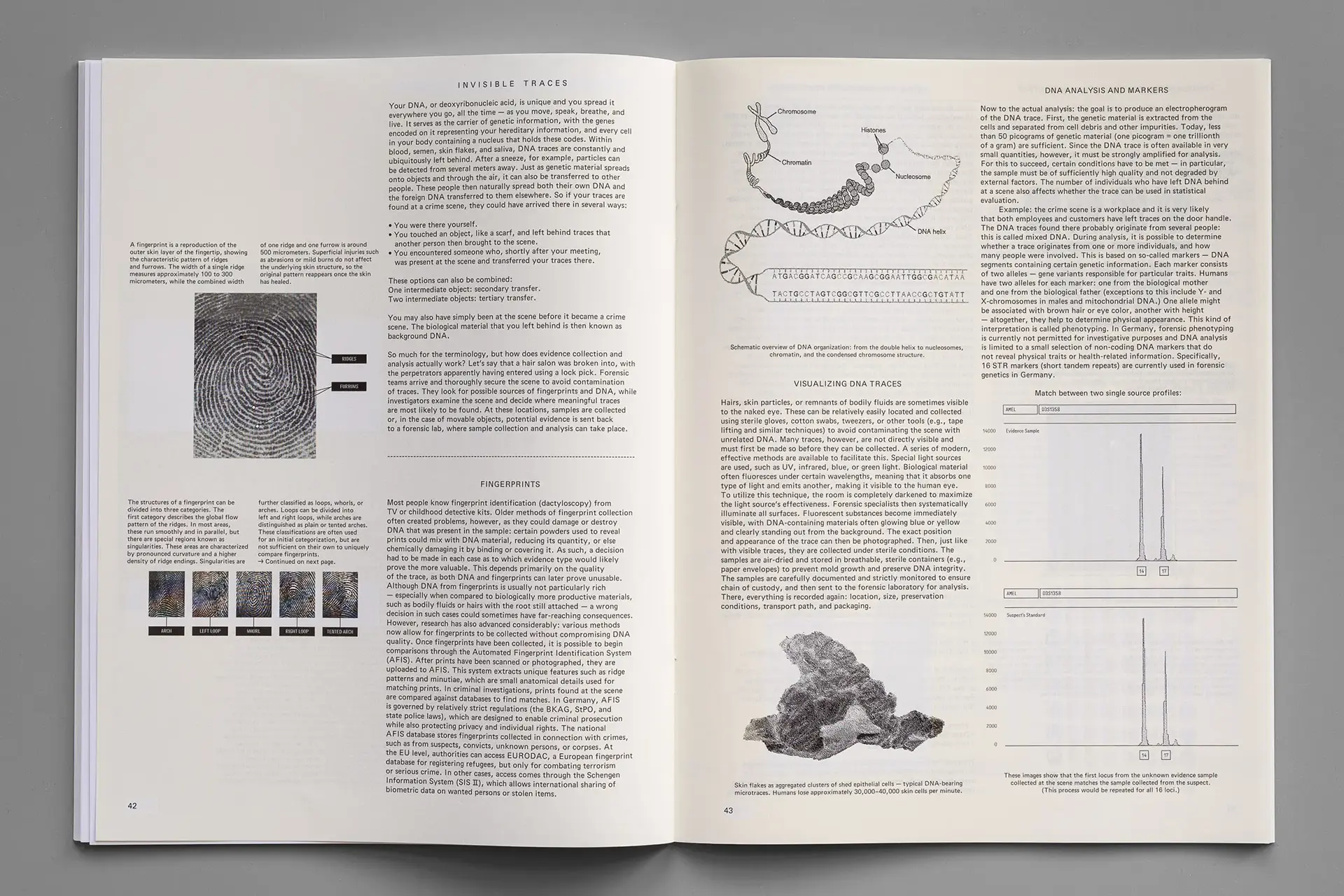 72 pages, 23 x 29,9 cm, staple bound softcover with flaps, white screen print on silver cover, different papers, centerfold